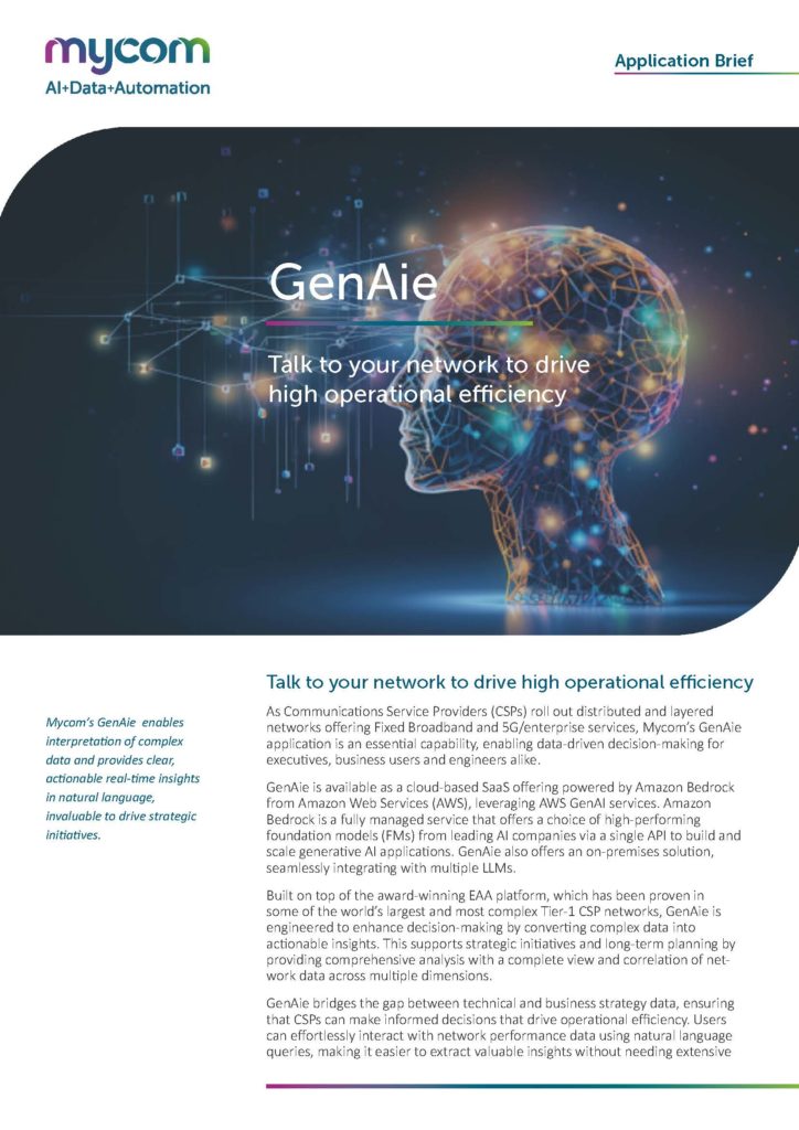 Mycom’s GenAie enables interpretation of complex data and provides clear, actionable real-time insights in natural language, invaluable to drive strategic...