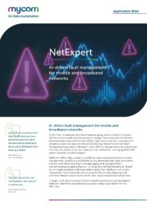 As 5G, fiber broadband, and cloud networks grow, and complexity increases the focus of successful service provision changes from resources to end users, Communications Service Providers (CSPs) require AI-driven fault management solutions above and beyond network monitoring. Mycom’s AI-driven Fault Management application, NetExpert helps CSPs to manage equipment faults and minimize the impact of service issues on their customers, leveraging AI for fault pattern detection and correlation.
